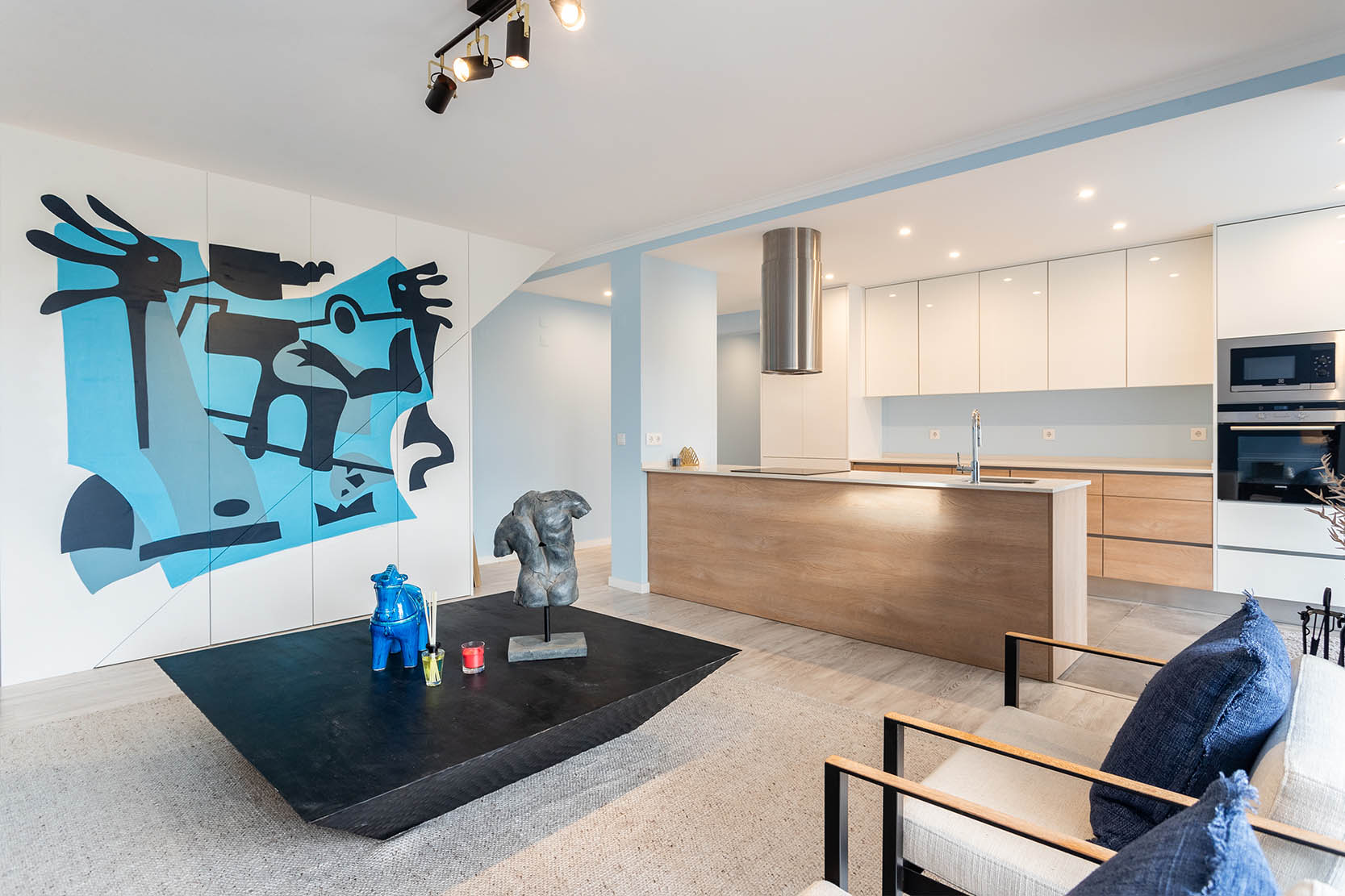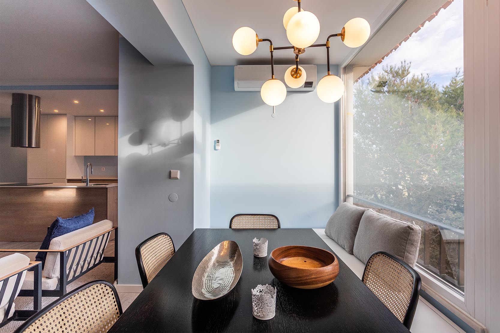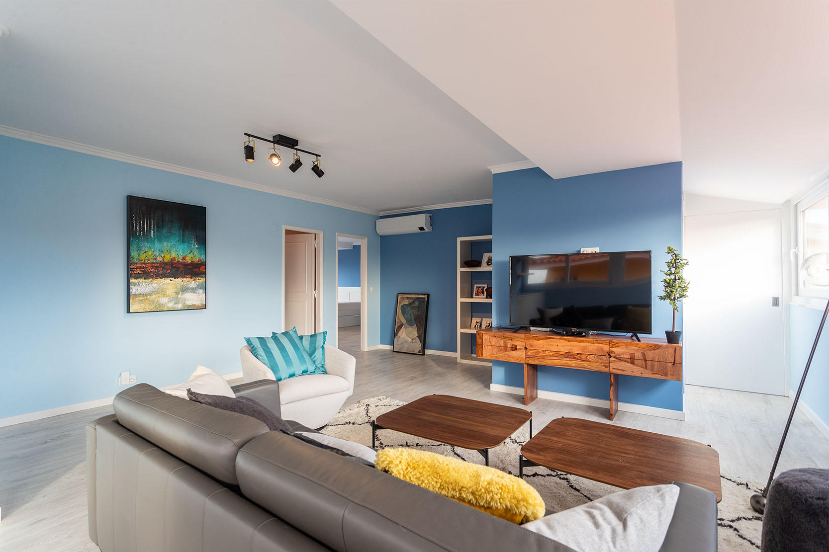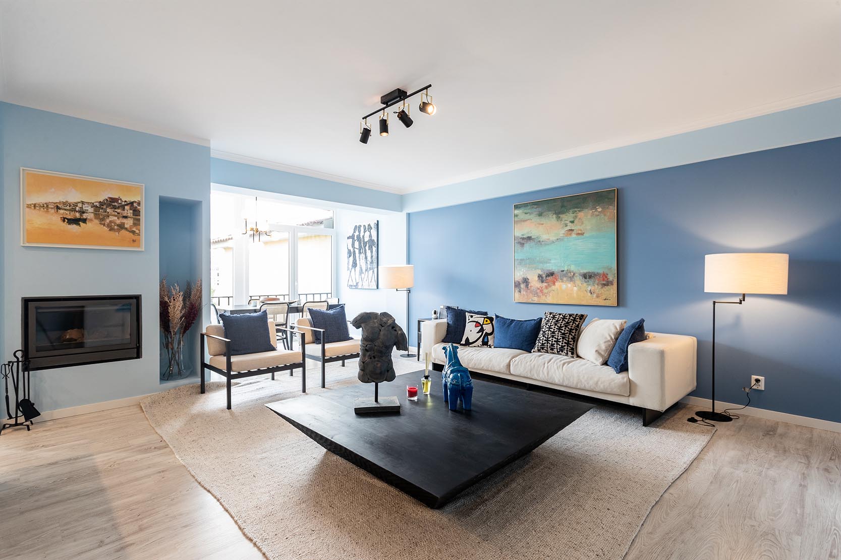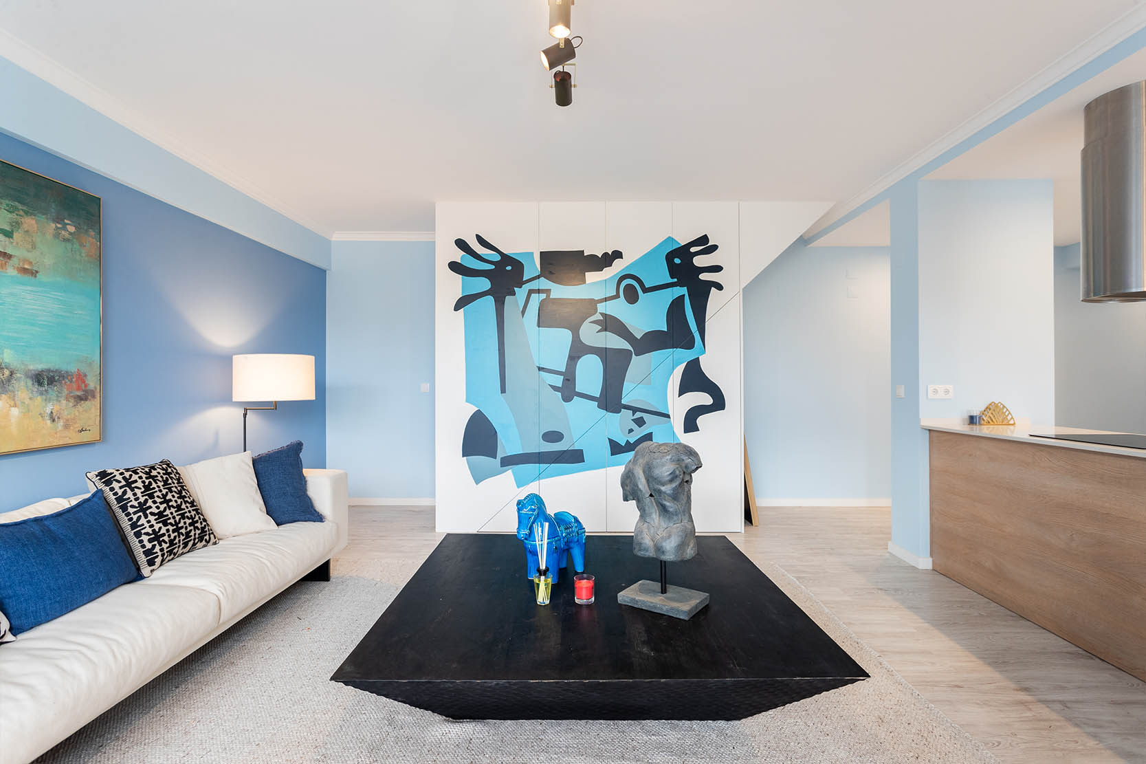 The architectural project preserved the characteristics of the construction from the 90s, taking risks with a bold interior painting in shades of sky and ocean blue and a contemporary decor with ethnic touches that give it a lot of personality.
