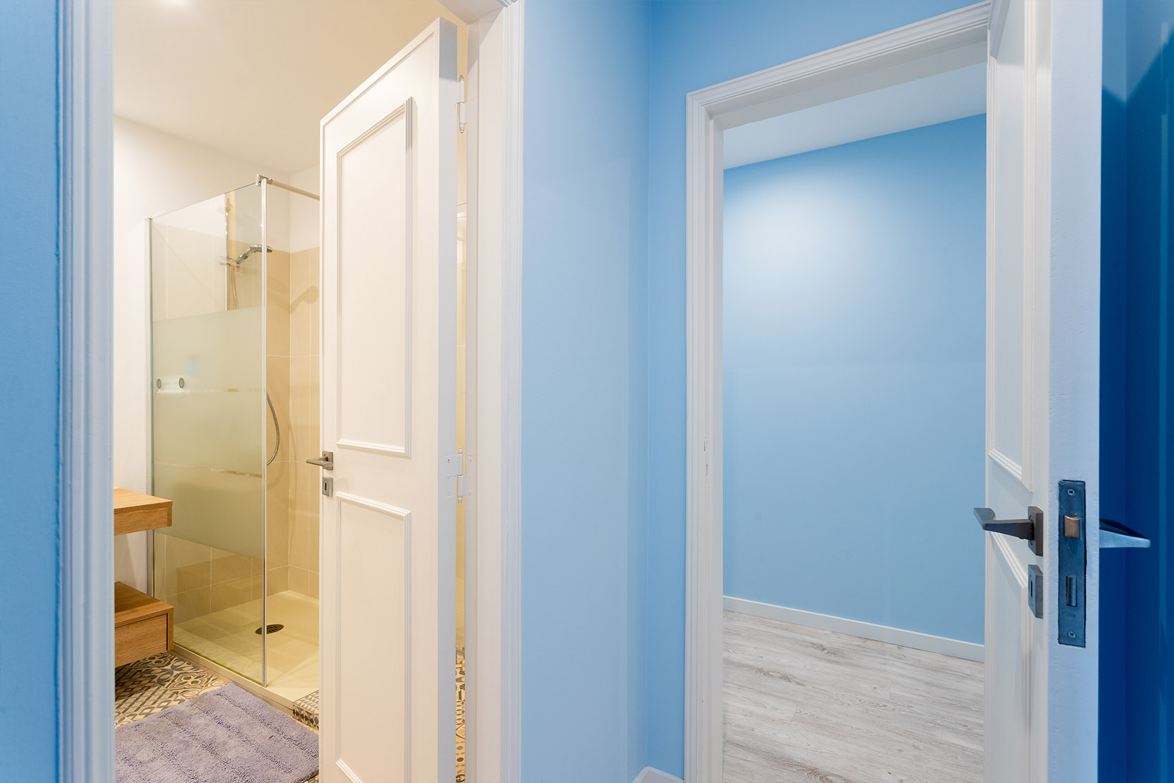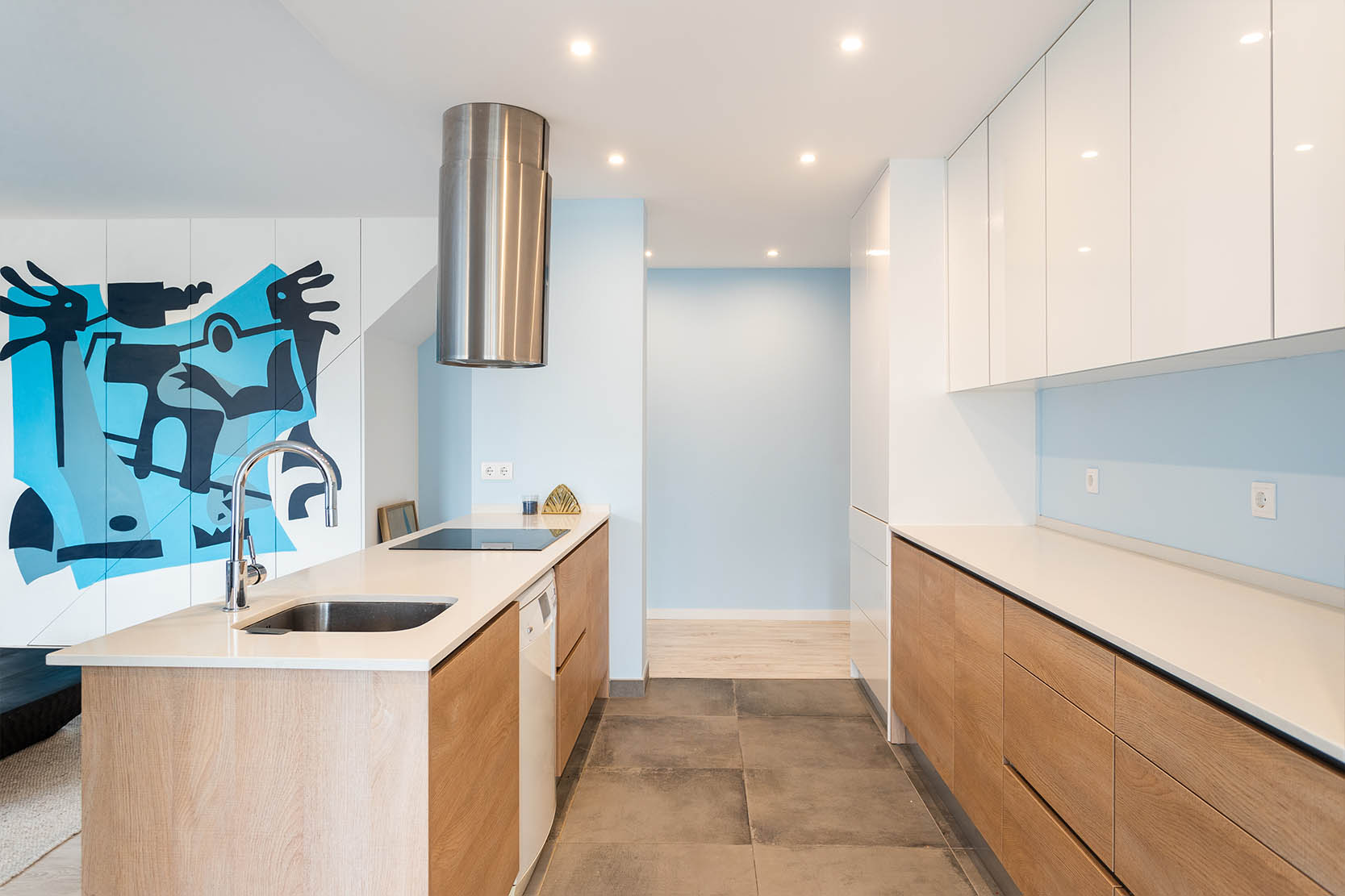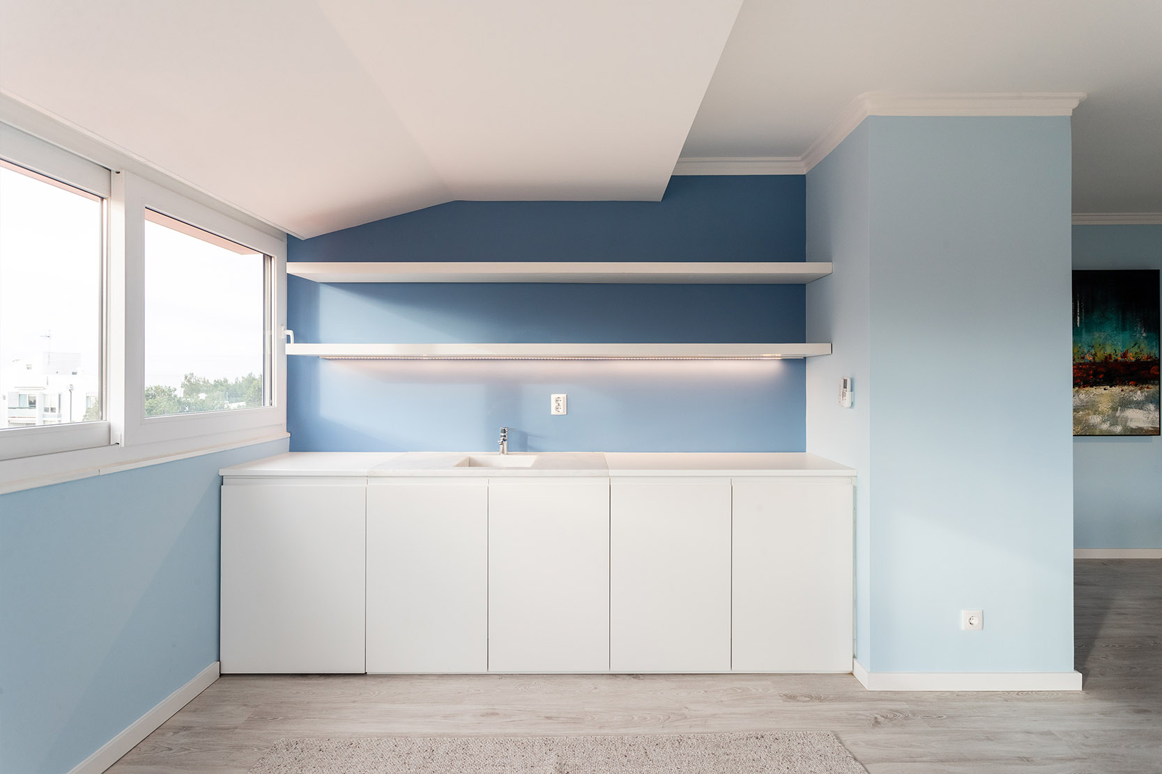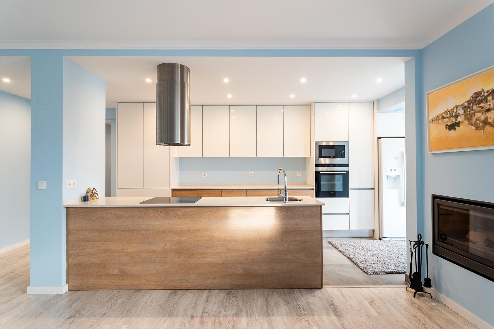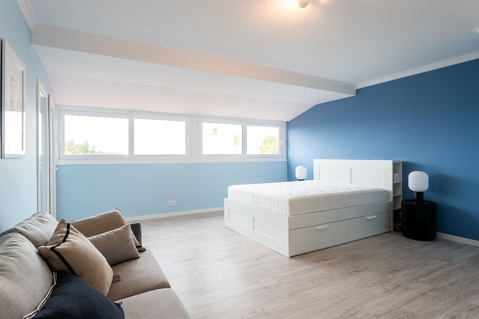 The architectural project preserved the characteristics of the construction from the 90s, taking risks with a bold interior painting in shades of sky and ocean blue and a contemporary decor with ethnic touches that give it a lot of personality.