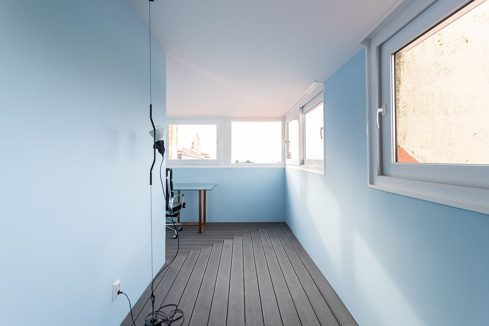 This apartment, located in Cascais, is a renovated duplex found on the top floor of a classic building in the Guia area.